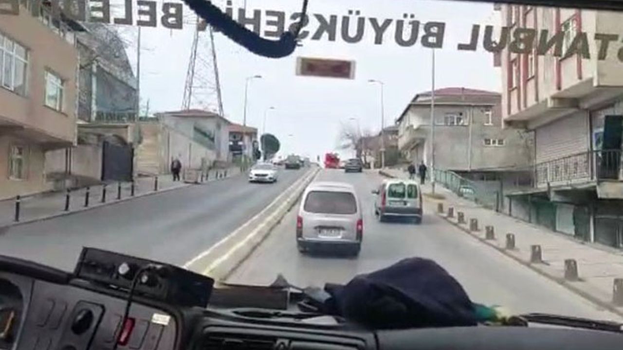 İstanbul Sultanbeyli’de bir ihbar üzerine adrese gitmekte olan itfaiye aracına, yoldaki bir ticari aracın sürücüsü yol vermedi. Sürücünün yolun sağına geçmeyerek ısrarla itfaiyeye yol vermediği anlar cep telefonu kamerasına yansıdı.