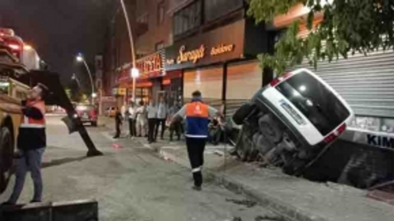 Sultangazi’de kontrolden çıkan hafif ticari araç, bir dükkanın önünde bulunan merdiven boşluğuna düştü. Dükkanla boşluk arasına sıkışan araç, vinç tarafından kaldırılırken, kazada yaralan olmadı.