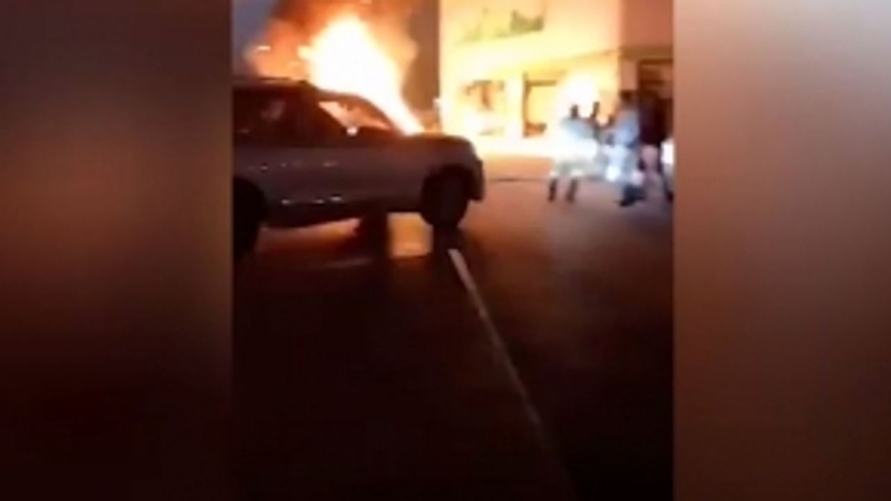 Suudi Arabistan’da bir akaryakıt istasyonunda alev alev yanan araca, işletmeci müdahale etti ama lüks cipiyle. İşletmeci cipiyle yanan aracı istasyondan uzaklaştırdı. Tehlikeli müdahale sırasında cipin bir lastiği de yanmaya başladı....