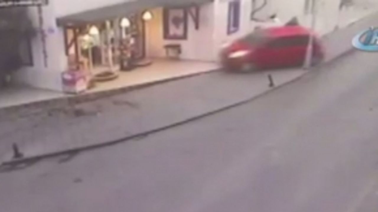 Muğla Bodrum’da düz yolda normal süratte seyir halinde olan bir otomobil herkesin şaşkın bakışları arasında önce yoldan çıktı, daha sonra yol kenarındaki dükkana girdi.