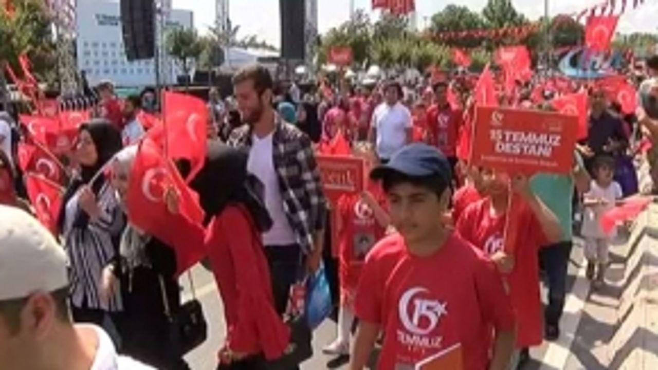İstanbul Büyükşehir Belediyesi (İBB) Çocuk Meclisi üyesi yüzlerçe çocuk ellerinde al bayraklarla, 15 Temmuz hain darbe girişiminin yıldönümünde şehitler için yürüdü.