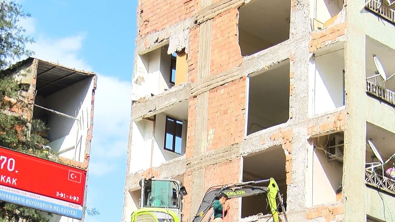 Diyarbakır'da ağır hasarlı 5 katlı binanın yıkımı sırasında, bitişikteki 7 katlı apartmanın ilk 5 katındaki bazı odaların duvarının yapılmadığı ortaya çıktı.
