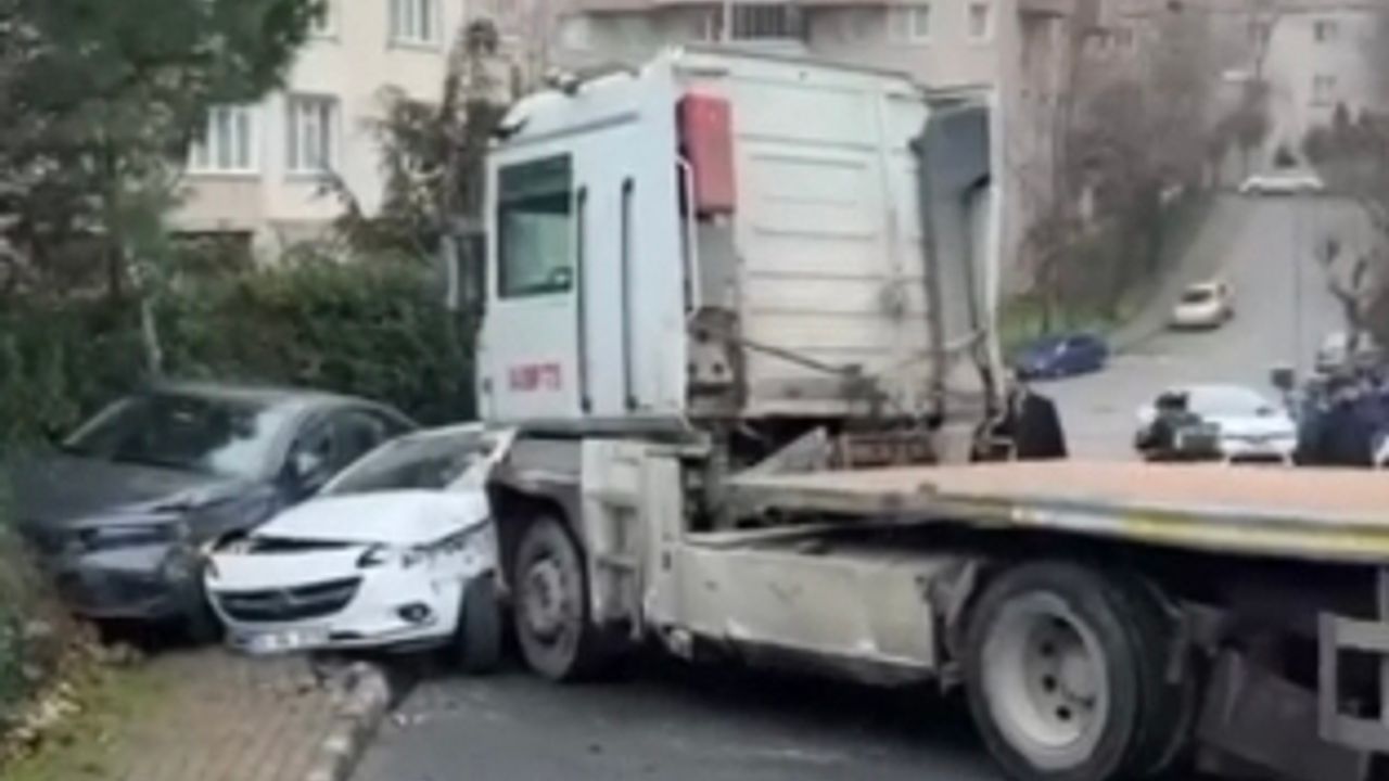 Kaza, dün saat 13.30 sıralarında Başakşehir Mahallesi Gülbahçe Sokağı'nda meydana geldi. İddiaya göre, henüz bilinmeyen bir nedenle park halindeki TIR bilinmeyen bir nedenle yokuştan kaymaya başladı. TIR, önce kaldırıma ardından park halindeki 5 araca çarptı. Kazada, şans eseri herhangi bir can kaybı veya yaralanan olmazken TIR, kamyon ve 4 otomobilde hasar oluştu.