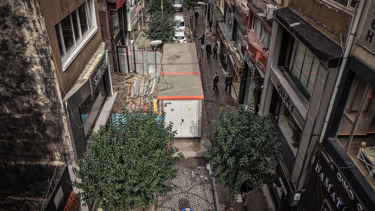 İBB, Meşrutiyet Mahallesi Belediye Hizmet Binası inşaatı nedeniyle yolun ortasına trafo koyarak sokağı ulaşıma kapattı. Havadan çekilen görüntülerde bu kadarı ancak fıkralarda olur dedirtiyor. Meşrutiyet Mahallesi gelen vatandaşlar kaldırımda yürümekte güçlük çekiyor. Trafo ile kapatılan yol nedeniyle motosikletliler kaldırımdan gidiyor. Esnaf ve vatandaşlar, hem ulaşımın aksaması hem de motosikletlerin kaldırıma yönelmesi nedeniyle oluşan tehlikenin bir an önce giderilmesini talep ediyor. Yaklaşık bir buçuk yıldır aynı noktada bulunduğu belirtilen trafo nedeniyle özellikle tekstil piyasasının yoğun olduğu bölgede indirme bindirme işlemleri aksadı. Yolun kapatılması sonrası motosikletlerin kaldırıma yöneldiği, bunun da yayalar açısından tehlike oluşturduğu evinden çıkan vatandaşa motosiklet çarptığı esnaf tarafından ifade edildi.