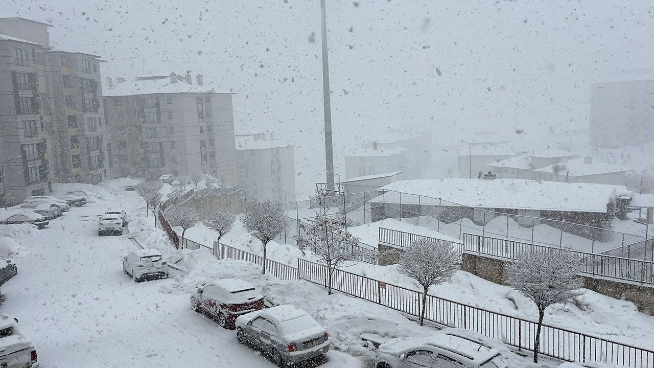 Hakkari'nin Yüksekova ilçesinde gece saatlerinde başlayan ve etkisini artırarak devam eden kar yağışı, ilçe merkezini beyaza bürüdü.